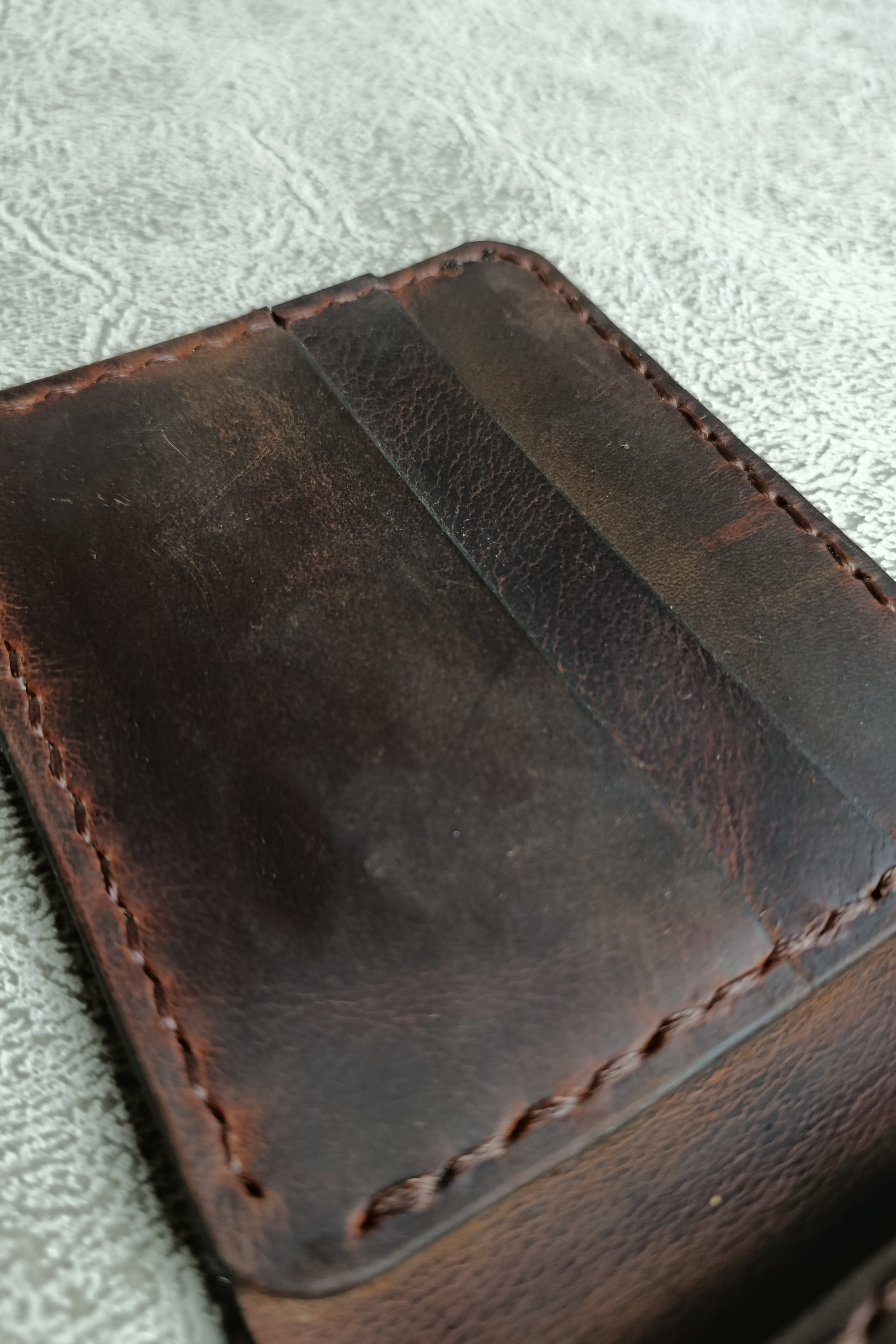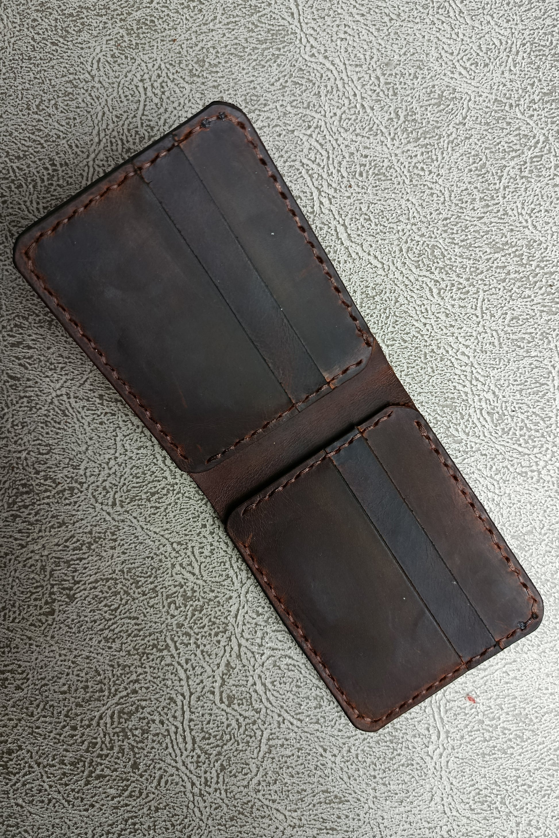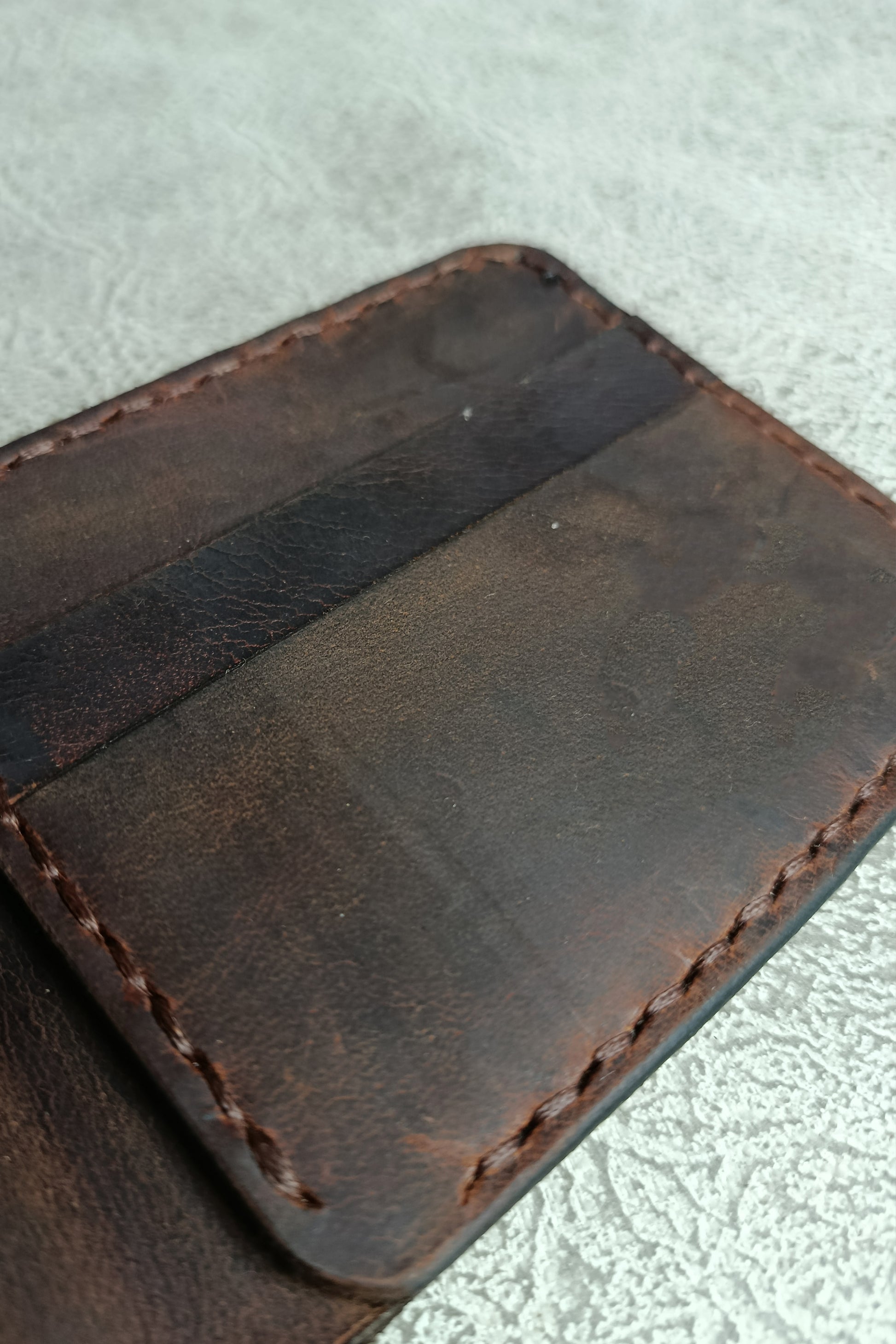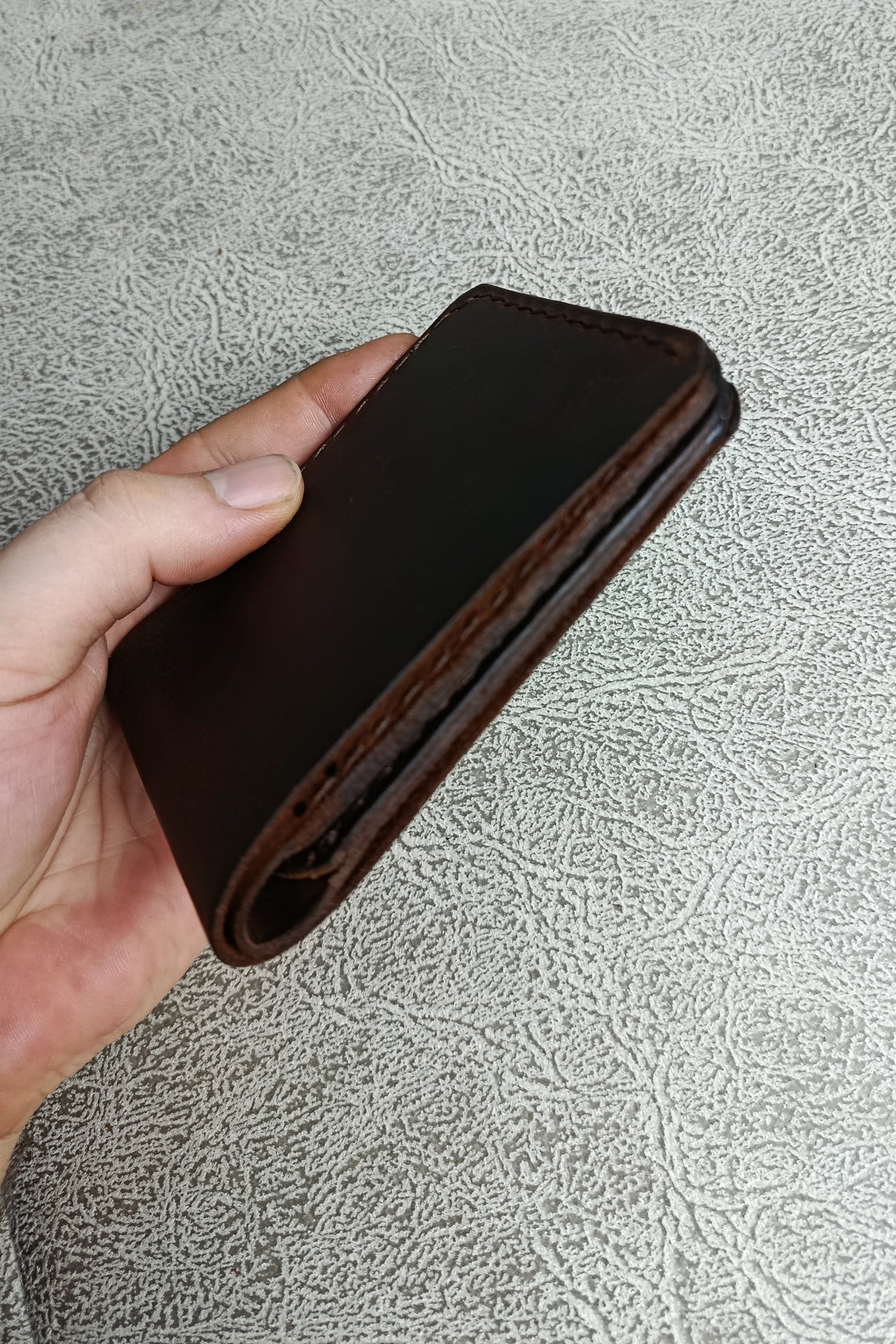 Bu el yapımı hakiki crazy horse deri cüzdan, her kullanımda eşsiz bir patina kazanır ve sahibine özel bir karakter oluşturur. Zanaatkârlık, mumlu iplikle yapılan sağlam el dikişinde ve özenle bitirilen kenarlarda gizlidir. Kompakt yapısı sayesinde cebinizde yer kaplamaz; günlük kullanımda maksimum konfor sağlar.