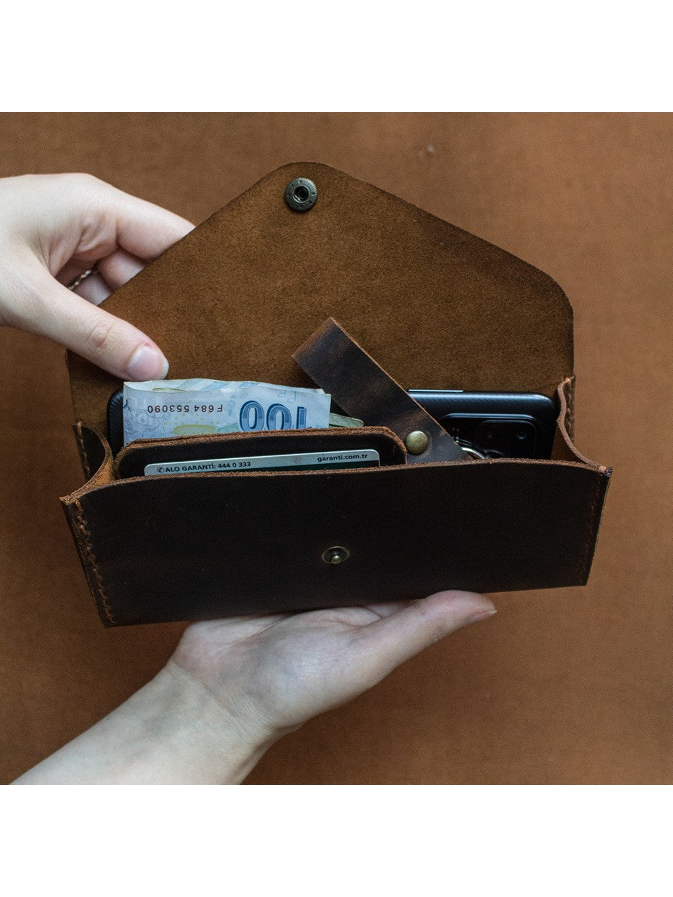 El Yapımı Hakiki Deri El Çantası - Clutch, akıllı telefonunuzdan kartlığınıza kadar günlük temel eşyalarınızı pratik ve şık bir şekilde taşımanız için tasarlandı. Kompakt yapısı sayesinde hem şehirde hem seyahatte kolayca yanınızda taşıyabileceğiniz bir el çantasıdır.