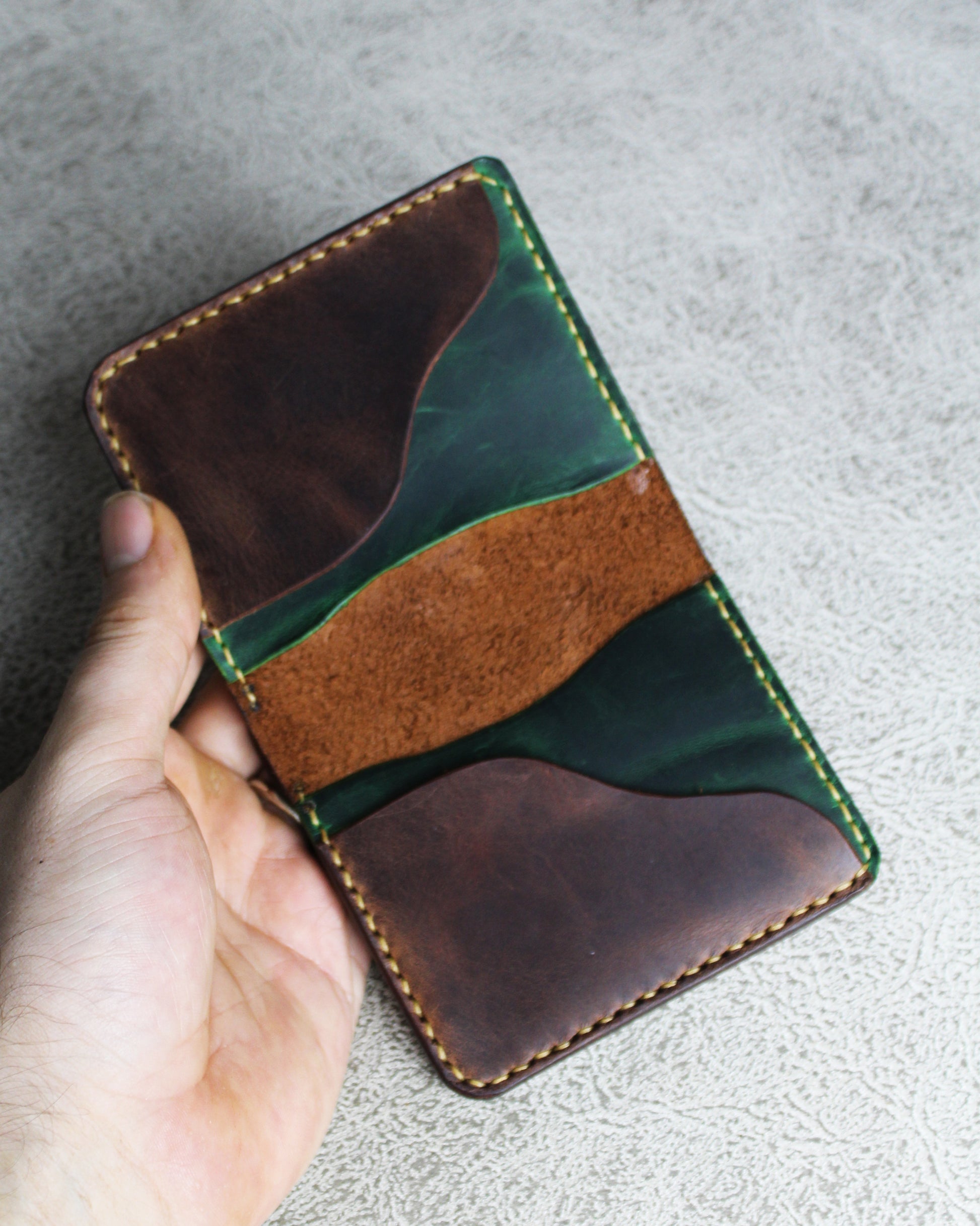 - Malzeme: 1.4 mm kalınlığında üst kalite Crazy Deri (Yeşil & Kahverengi)