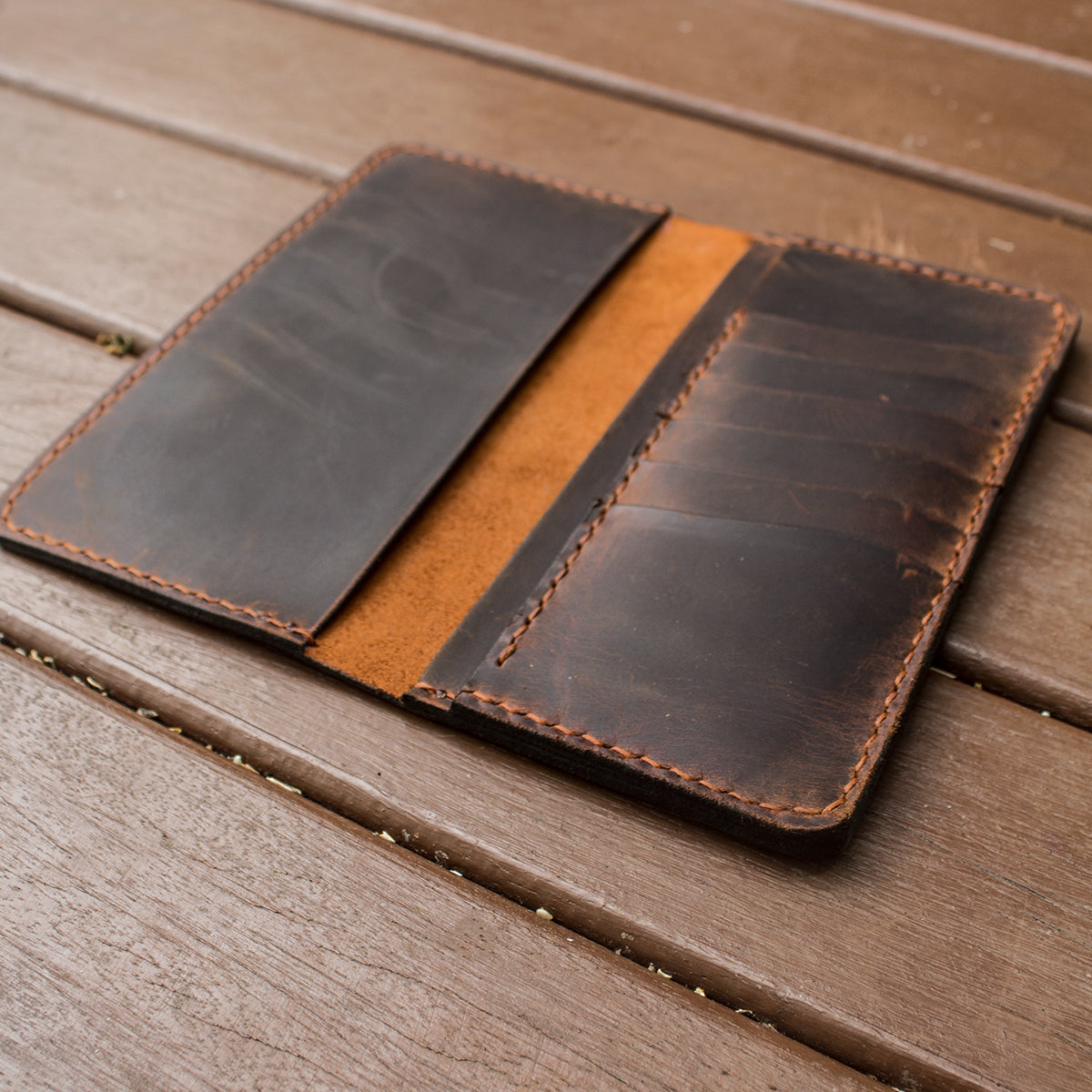 El Yapımı Hakiki Deri Cüzdan Telefon Kılıfı - Western